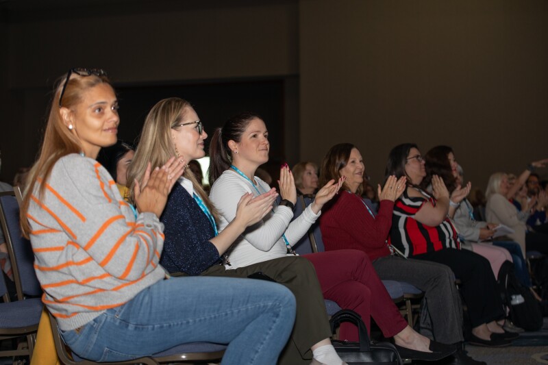 Attendees clapping for Ann Hiatt during keynote presentation